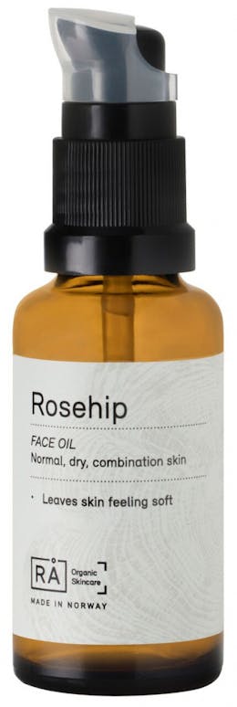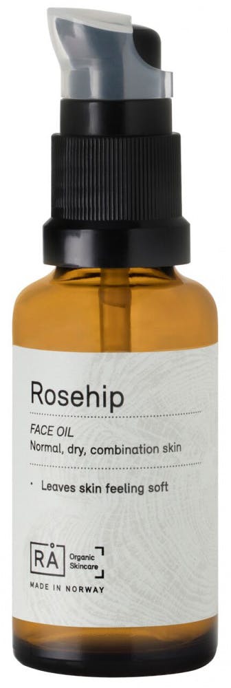 RÅ Rosehip Face Oil er en 100 % ren og kaldpresset olje med et høyt innhold av fettsyrene linolsyre (omega 6) og linolensyre (omega 3), C-vitamin og pro-vitamin A. Linolensyre har en antiage-effekt ved å minske skader som UV-stråler lager på kollagenet samt bidrar til å fremme produksjon av nye hudceller. Linolsyre er viktig for en sterk barrierebeskyttelse av huden og for å unngå tørr hud.