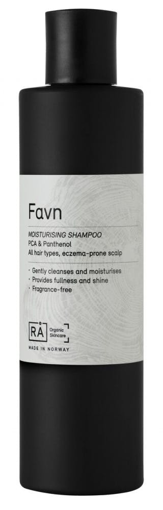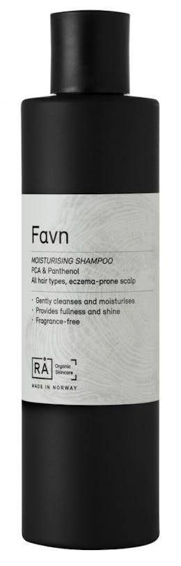 Favn Moisturising Shampoo er en supermild sjampo som bidrar til en sunn hodebunn og en sterk og fin hårmanke. Sjampoen er i første rekke laget på en svært mild og balansert rengjøringsbase, som er en forutsetning for en sunn hodebunnsflora med gode vekstforhold. Så er den tilsatt styrkende og fuktighetsgivende ingredienser som gjør håret mykt, sterkt og glansfullt. Denne sjampoen er ikke tilsatt noen form for parfyme eller essensielle duftstoffer, og passer derfor godt for alle de som bør unnvære dette.